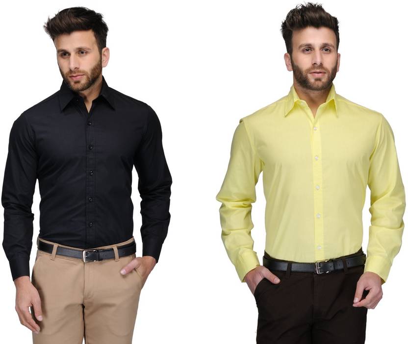 Allen Men S Solid Formal Black Yellow Shirt Buy Black Yellow