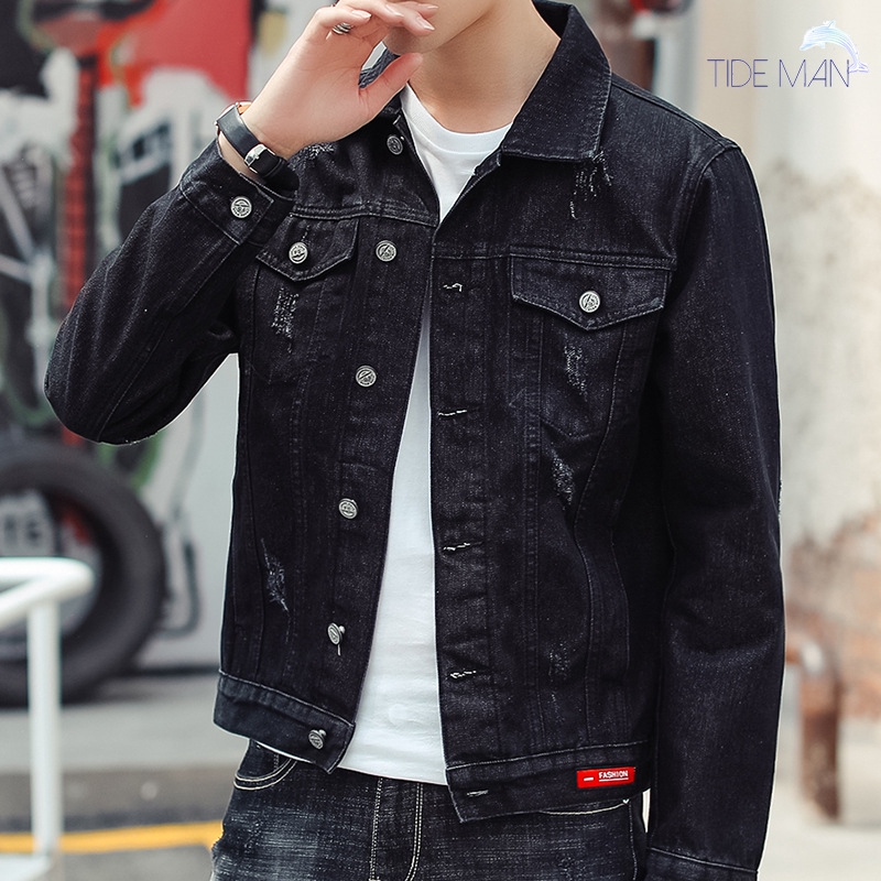 Japan Style Mens Jeans Jacket Black Denim Jackets Hip Pop