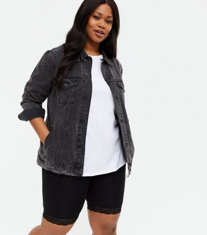 Curves Black Acid Wash Oversized Denim Jacket New Look