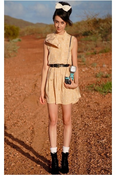 Light Yellow Vintage Dress Dresses Cream Bow Accessories Black