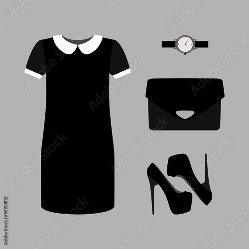 Set Of Trendy Women S Clothes Outfit Of Black Woman Dress With