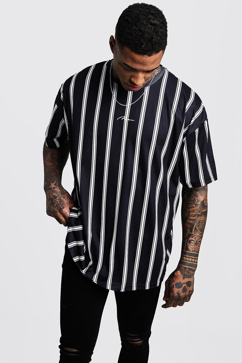 Oversized Stripe Man Signature T Shirt Boohoo Nz