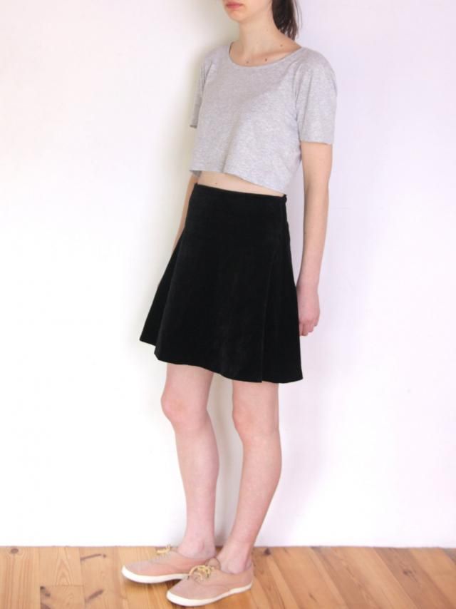 Adorable Casual Party Outfit Idea Black Velvet Skater Skirt Grey