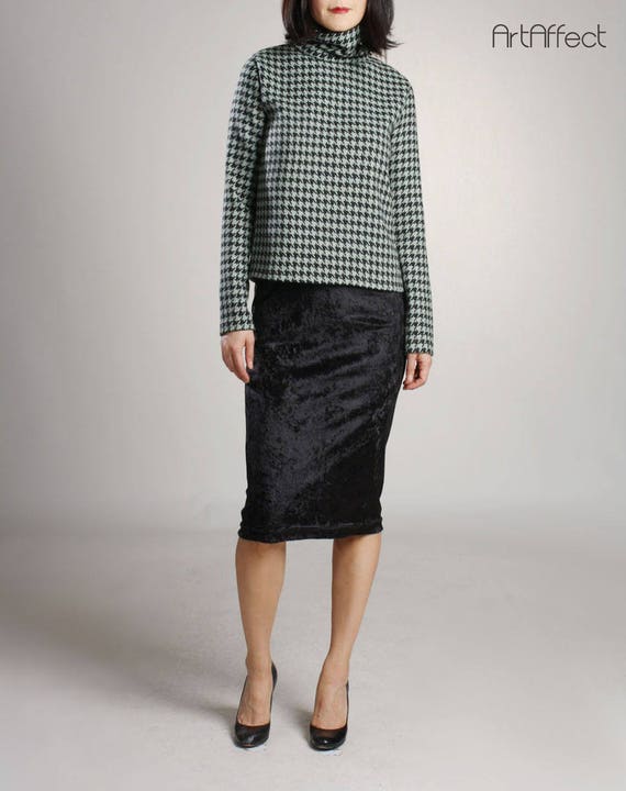 Pull On Velvet Skirt Black Velvet Pencil Skirt Wear To Work Etsy