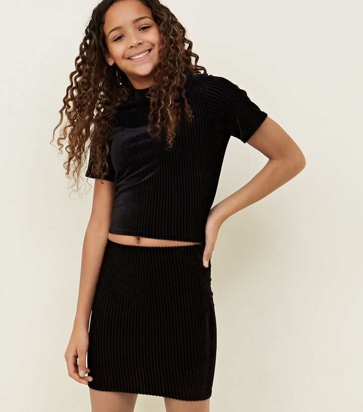 Girls Black Ribbed Velvet Tube Skirt New Look