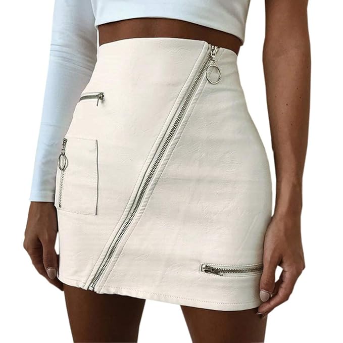 Casual Leather Skirt For Women Bestoppen High Waist Paint Zip