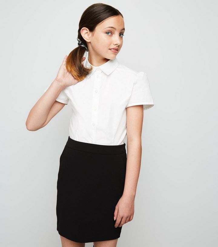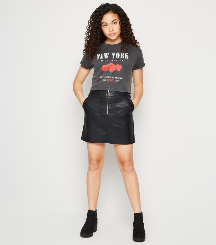 Girls Black Ring Zip Denim Tube Skirt New Look