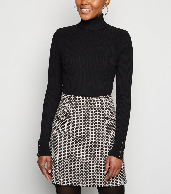 Black And White Front Zip Biker Mini Skirt Outfit Worn By Jane