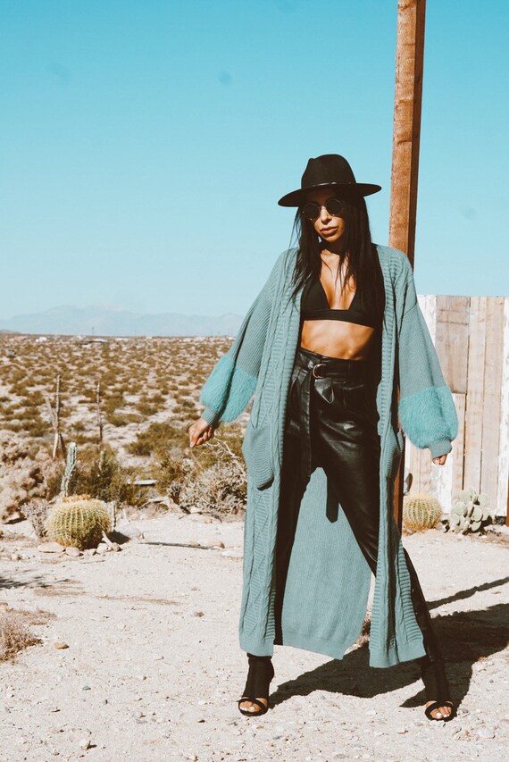 Boho Teal Knit Bohemian Romantic Winter Autumn Kimono Duster Etsy