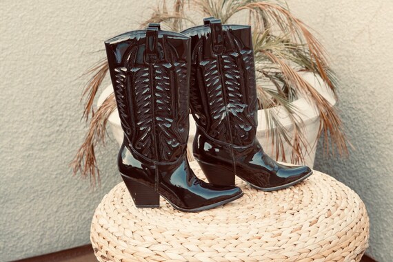 Faux Pu Vinyl Cowboy Western Boots Boho Chic Bohemian Style Etsy