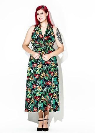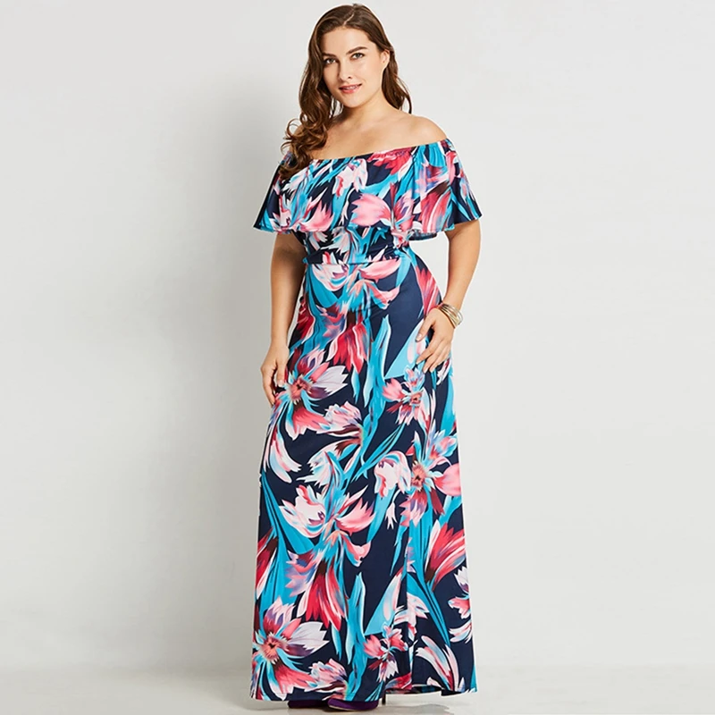 Yilia Fat Mm Floral Print Maxi Plus Size Dress Sexy Slash Neck Big