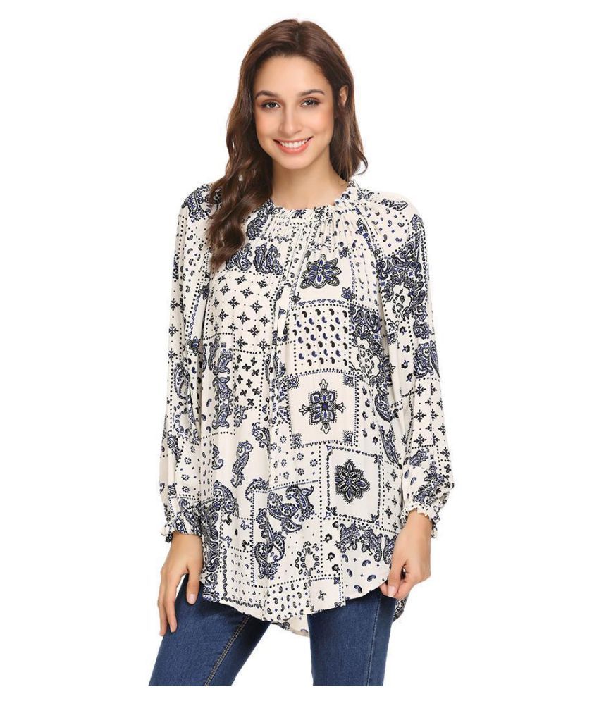 Buy Women Bohemian Style Round Neck Raglan Long Sleeve Printing