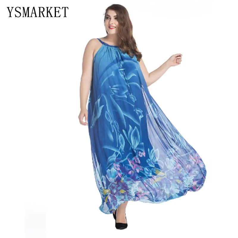 M 7xl Chiffon Fabric Bohemian Dress Women Clothing Plus Size Maxi