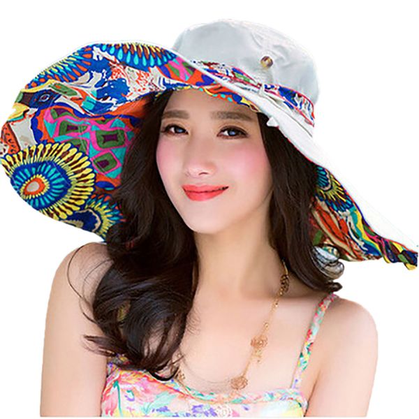 New Fashion Bohemian Style Flower Foldable Brimmed Sun Hat For