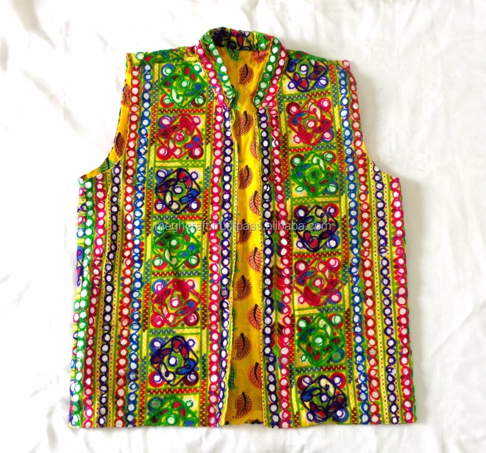 Vintage Tribal Vest Gujarati Hand Embroidery With Mirrors Work Man