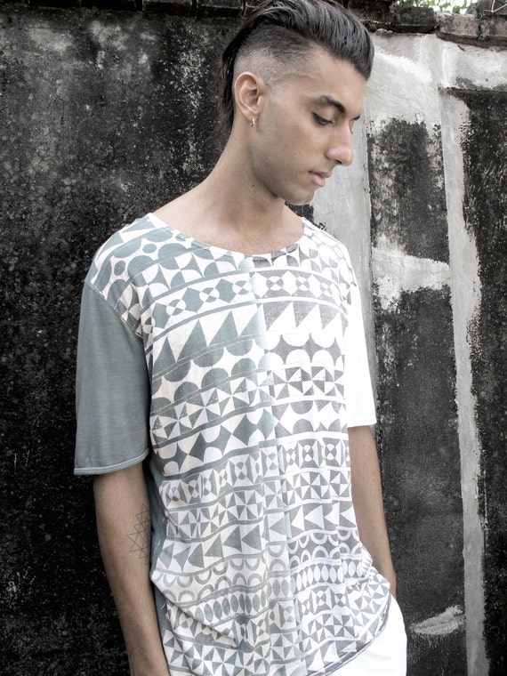 Men S Bohemian T Shirt Man S Long Shirt Grey White Etsy