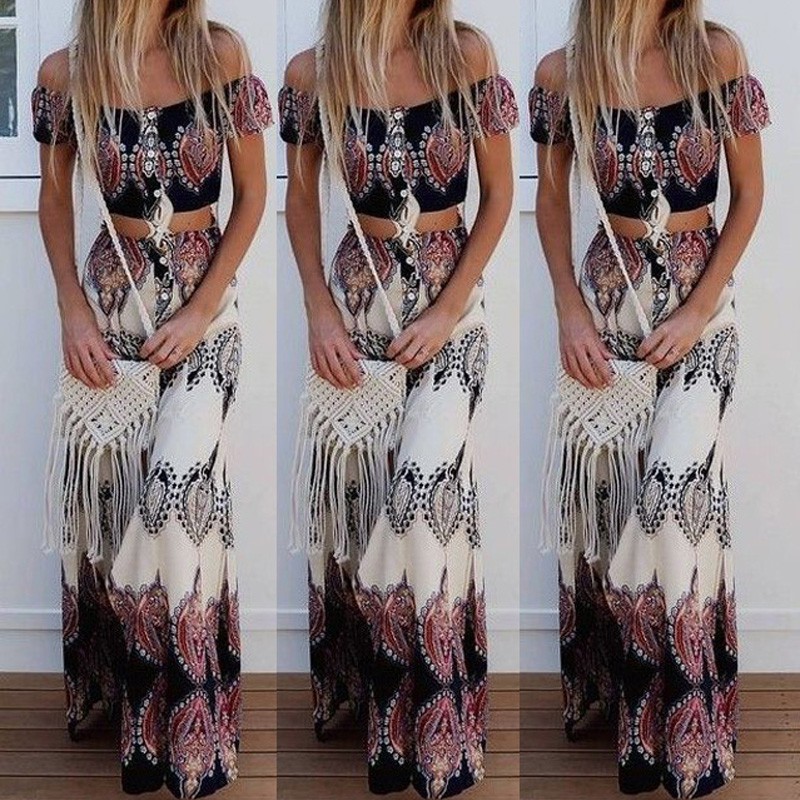 2 Pieces Set Women Summer Dress Bohemian Style Party Dress