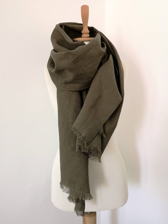 Army Green Linen Scarf Oversized Bohemian Style Shawl Etsy