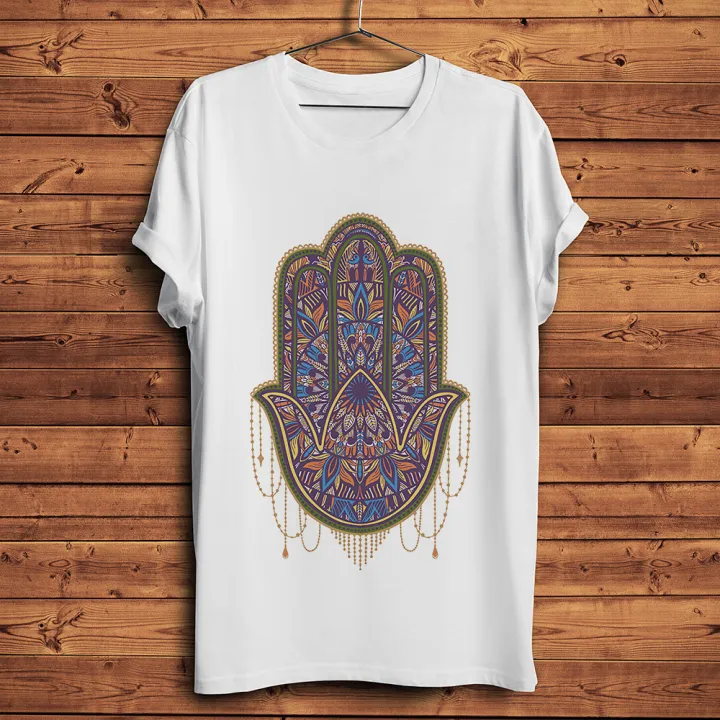 Bohemian Style Arabian Hamsa Hand T Shirt Men New White Casual