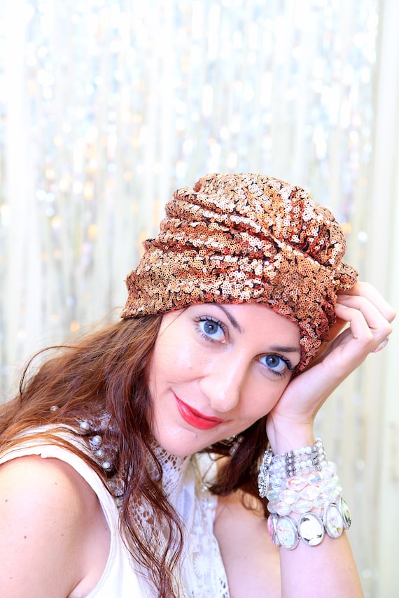 Sequin Turban Hat In Copper Women S Hair Turbans Mardi Etsy