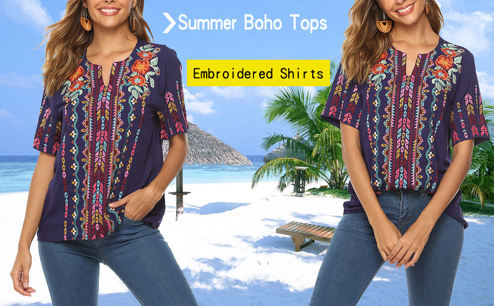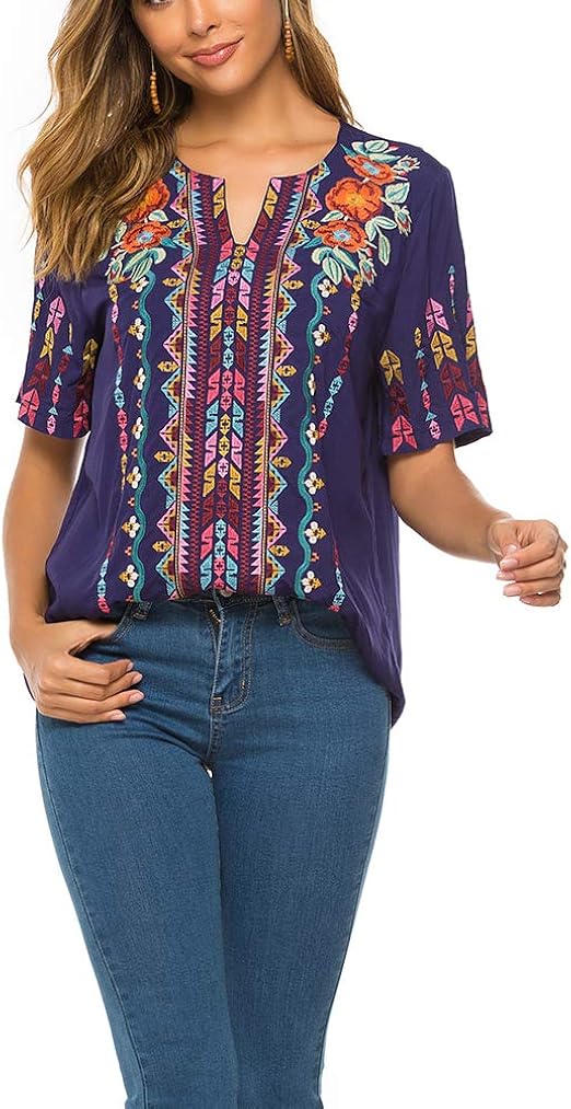 Ak Women S Summer Boho Embroidery Mexican Bohemian Tops Shirt