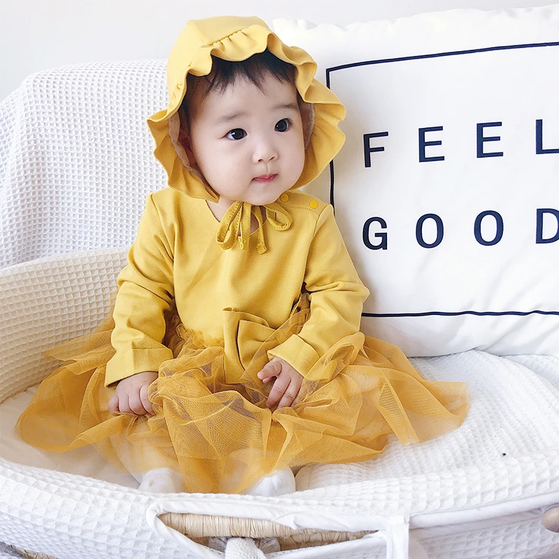 2pcs Korean Baby Girl Princess Romper Hat Solid Cute New Born