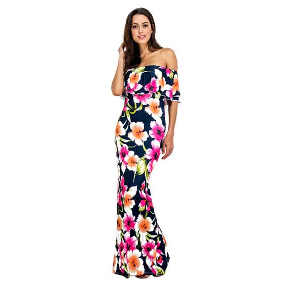Women S Plus Size Floral Off Shoulder Bohemian Party Casual Beach
