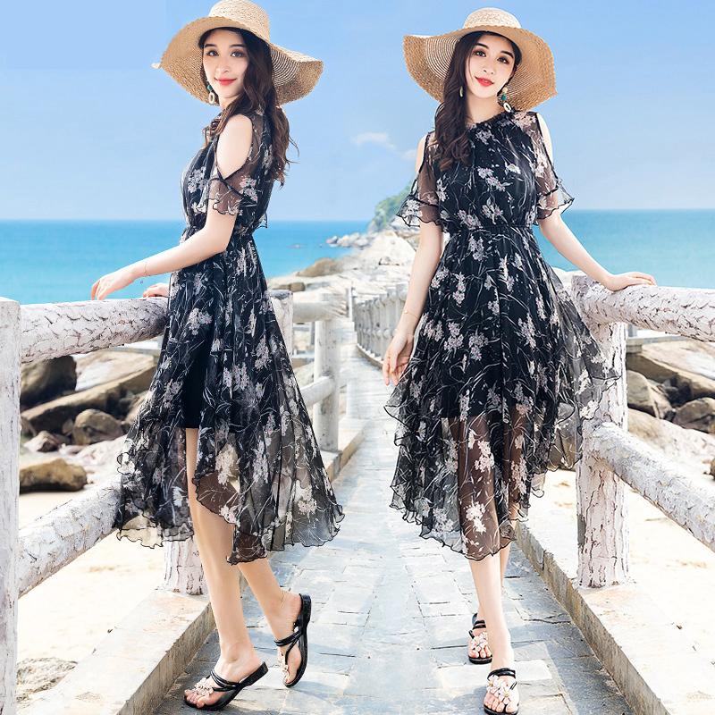 Women Summer Sexy Floral Print Off Shoulder Beach Bohemian Chiffon