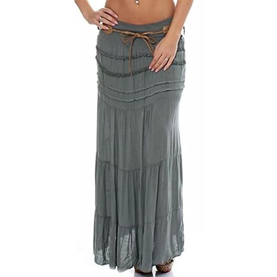 Ladies Women Hi Waisted Cotton Skirt Boho Gypsy Layered Asymmetric