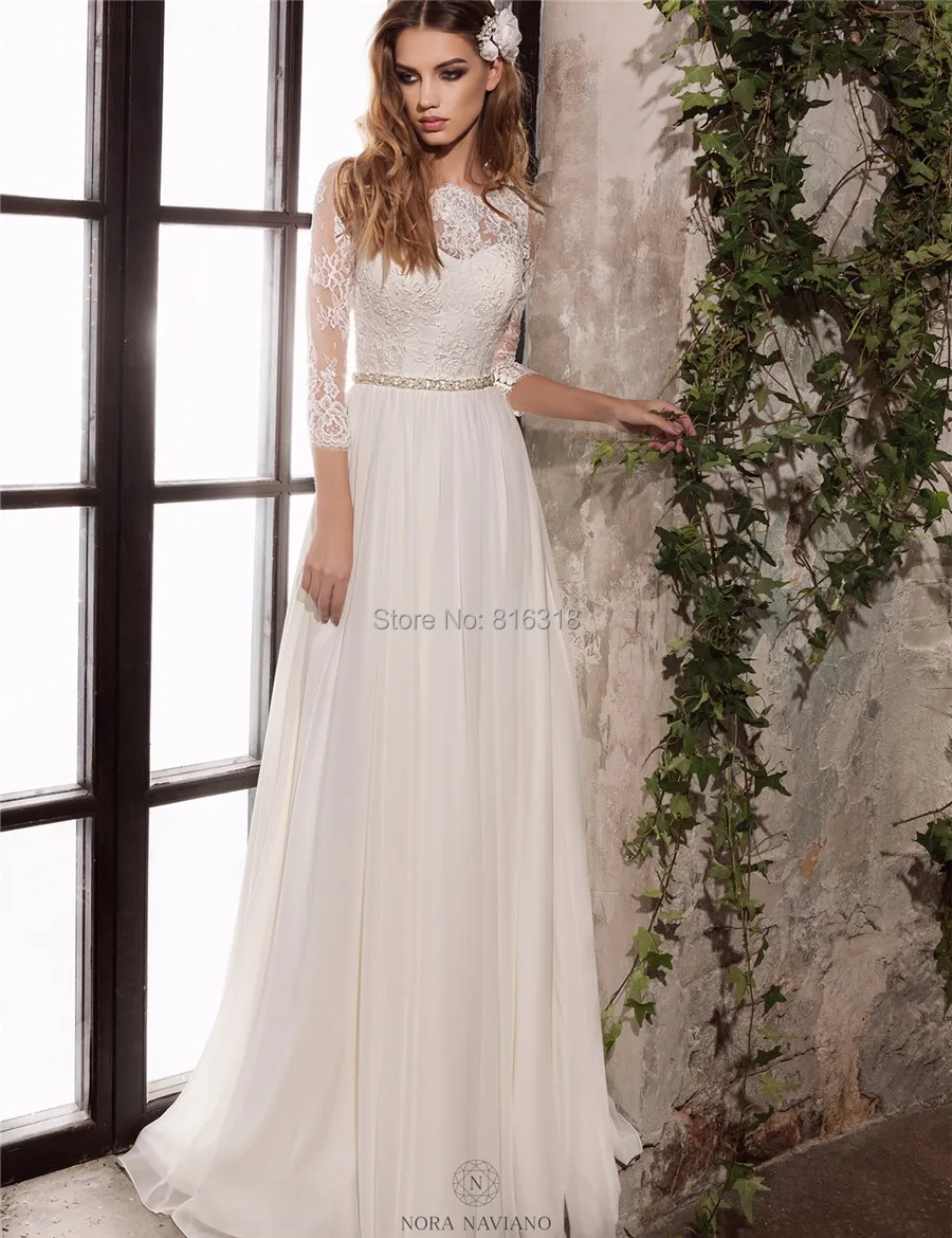 Elegant Simple Bohemian Wedding Dress Discount Lace Long Sleefe