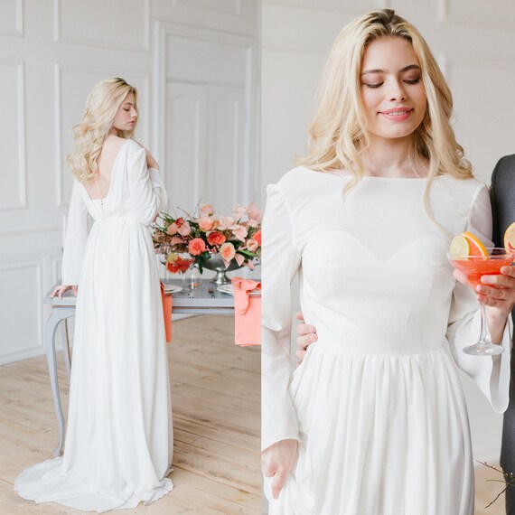 Boho Open Back Wedding Gown Simple Bridal Dress Chiffon Etsy