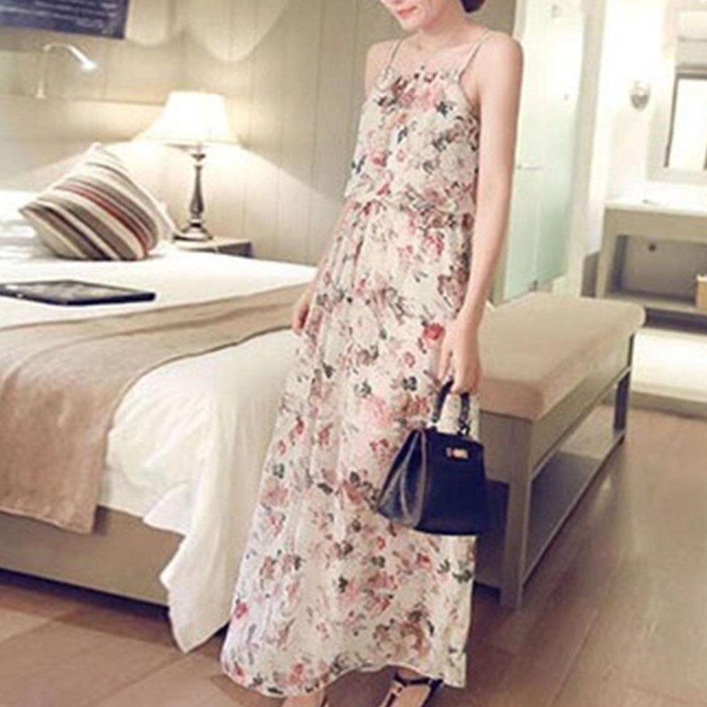 Women Summer Bohemian Style Flower Printing Elegant Chiffon Beach