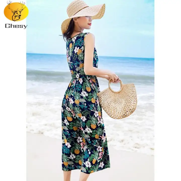 Qingfan Women S Summer Sexy Elegant Bohemia Loose Beach Printed