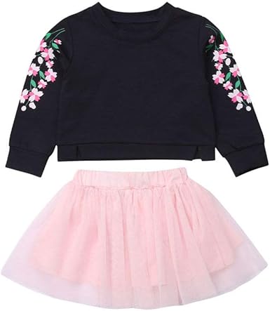 Amazon Com 2pcs Kid Baby Girls Top Skirt Outfits Black Long