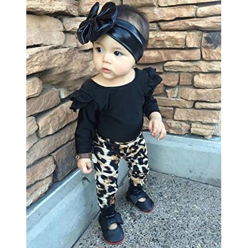 Shop 2pcs Newborn Kids Baby Girls Outfits Set Black Ruffle Sleeve