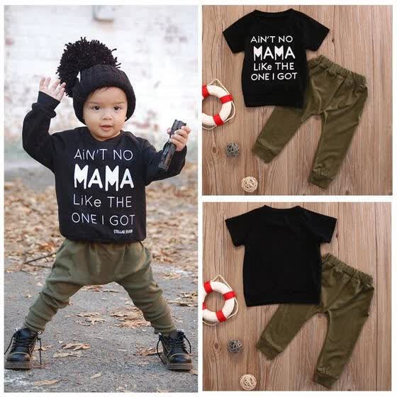 2019 Kids Baby Boy Outfits Black T Shirt Camouflage Pants Set Kid