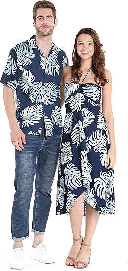 Couple Matching Hawaiian Luau Party Outfit Set Shirt Dress In