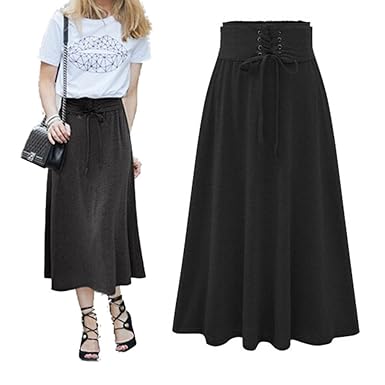 Juqilu Women S Cotton Skirt Pleated High Waist Stretchy Plain