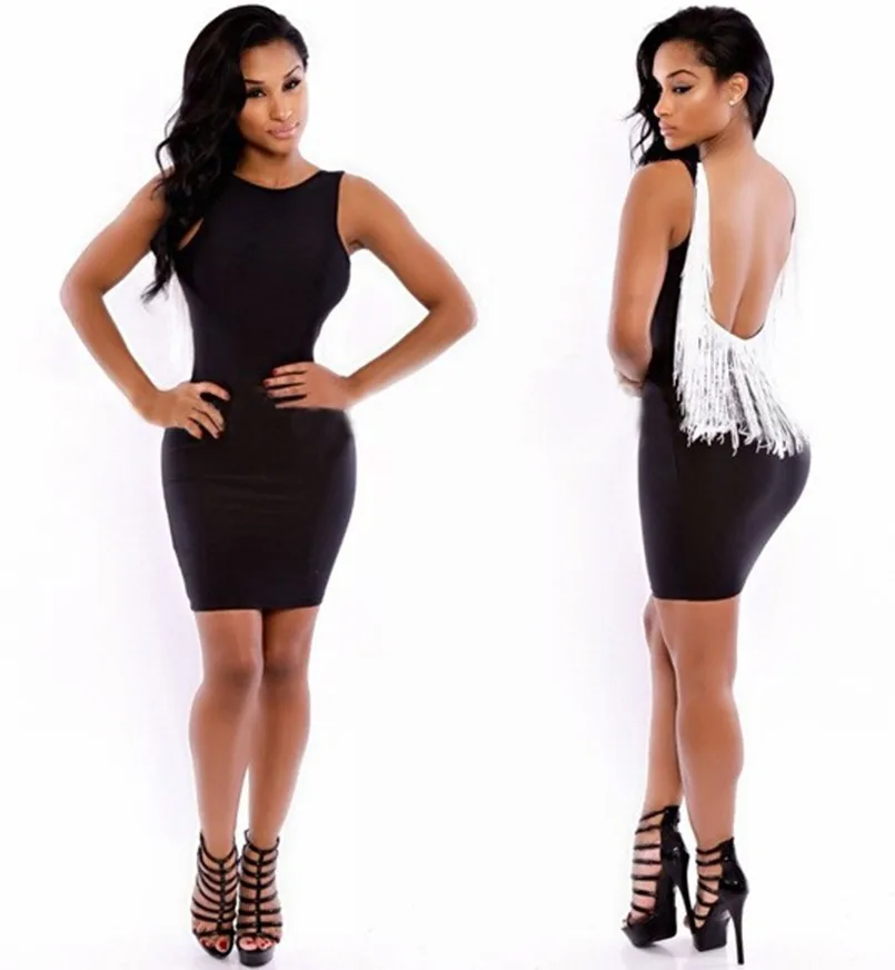 Buy 1968 Europe Fashion Tassel Style Sexy Sleeveless Dresses