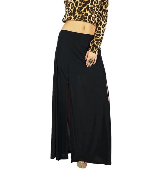 Bimba Women Black Long Skirt With 2 Slits Stretch Lycra Fabric