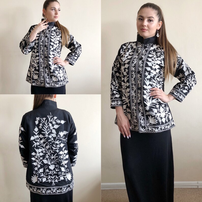 Bohemian Black And White Embroidery Jacket Vintage Style Etsy