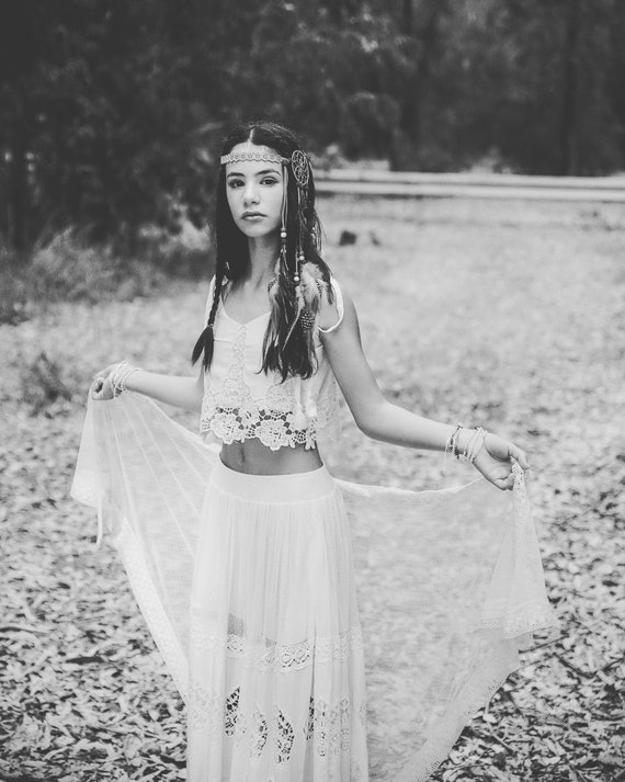 White Boho Flower Girl Dress Junior Bridesmaid Dress Skirt Etsy