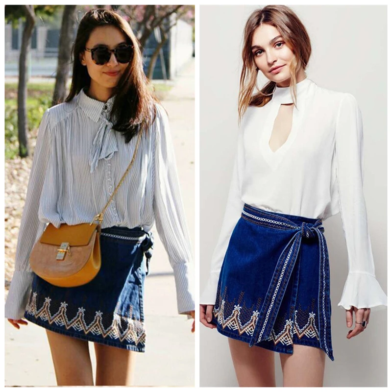 Bohemian Style Bohemian Denim Skirt Outfit