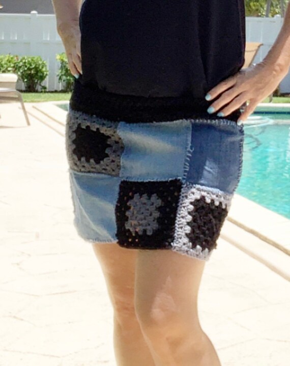 Denim Mini Skirt Upcycled Denim Patchwork Mini Skirt Etsy