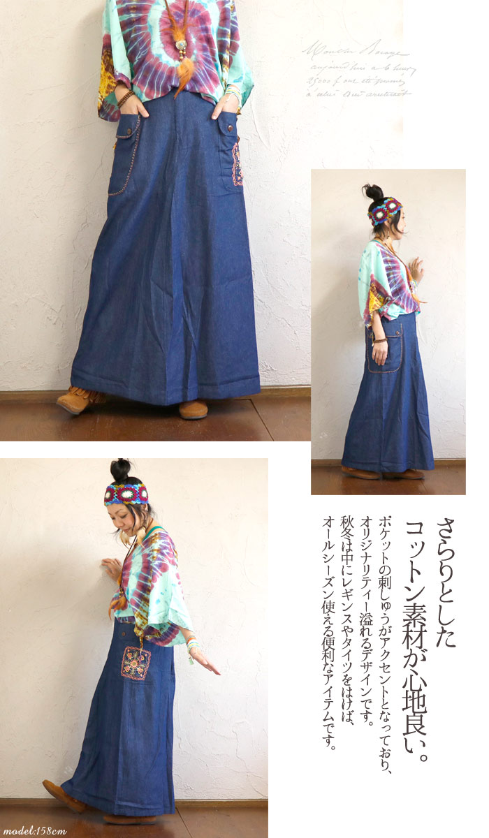 Bohemian denim skirt outfit. And as ever we have free shipping. Getting started with boho fashion. Free shipping over 100.