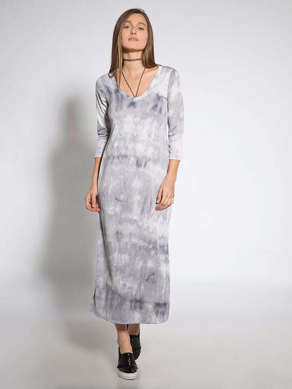 Long Grey Dress Maxi Dress With Slit Casual Dresses For Etsy