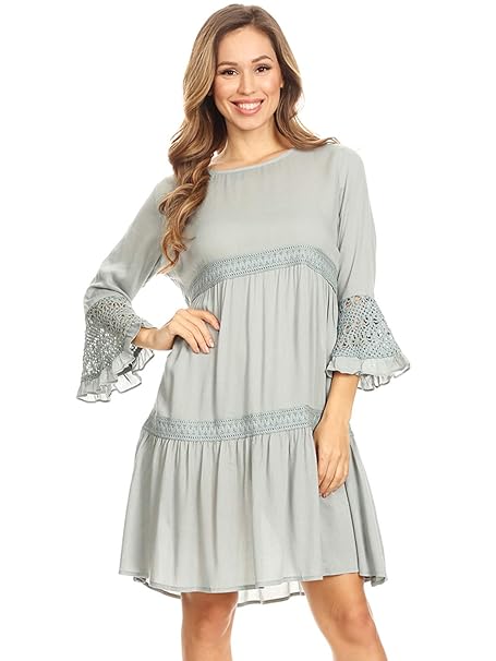 Anna Kaci Women S Casual Semi Sheer Bohemian Crochet Lace Flounce