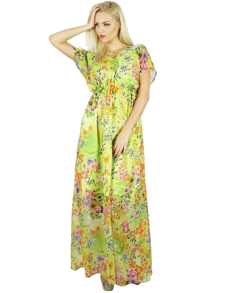 Bimba Women Bohemian Style Long Semi Sheer Chiffon Dress Half