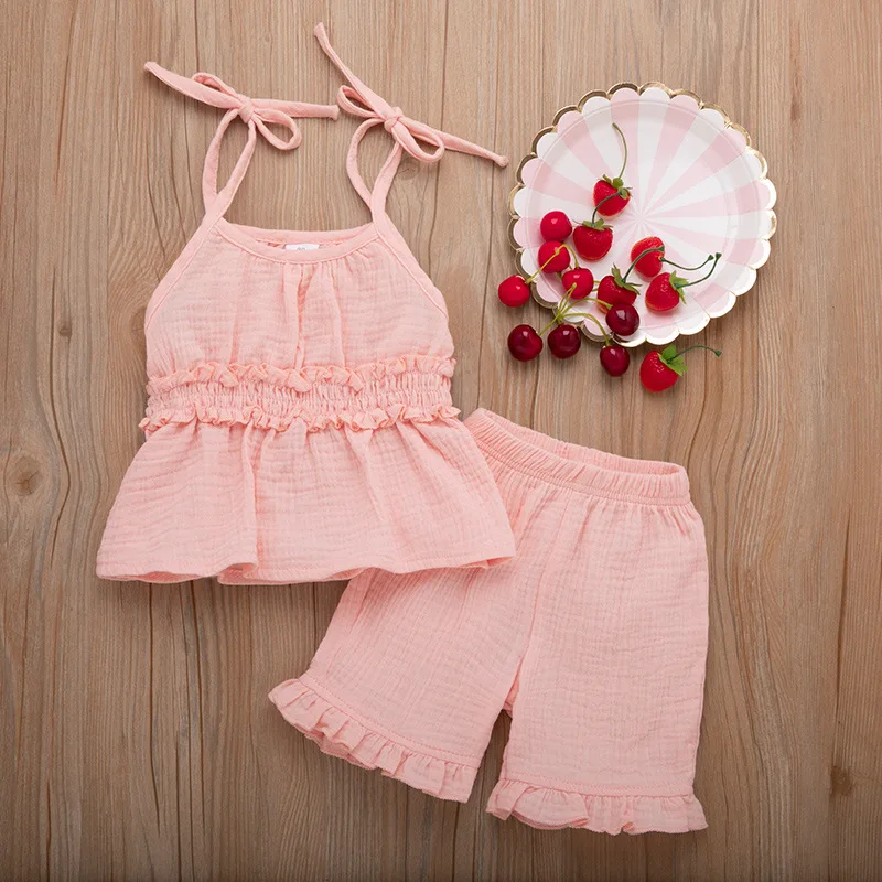 Toddler Baby Girl Summer Clothes Casual Straps Solid Tops Ruffles