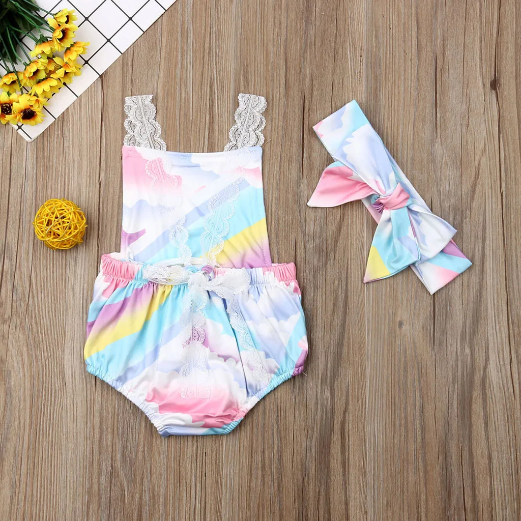 2019 Summer Baby Girl Summer Clothes Sleeveless Rainbow Romper